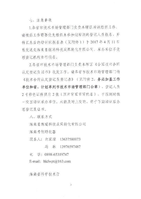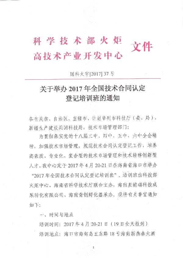 關于舉辦2017年全國技術合同認定登記培訓班的通知