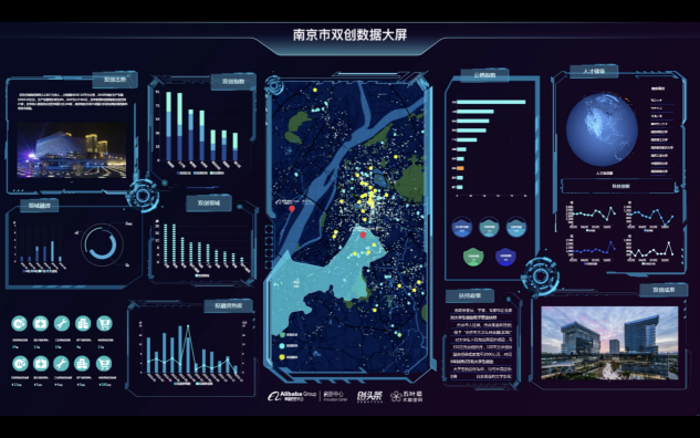 4月26日,阿里巴巴創新中心、創頭條和五葉草,在南京云棲大會上共同發布了首個南京市雙創數據大屏,首次通過大數據可視化技術和指數形式,全面客觀描繪南京雙創發展格局和態勢。