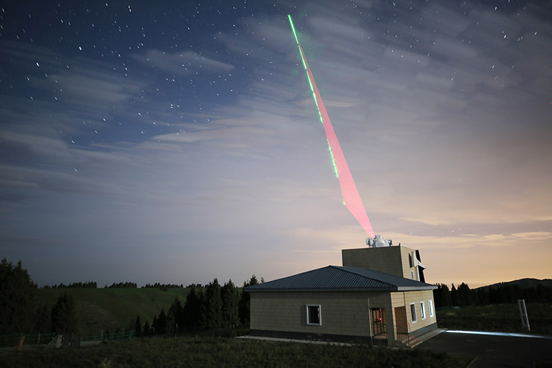 6月15日,在烏魯木齊南山觀測站,“墨子號”量子科學實驗衛星過境,科研人員在做實驗(合成照片)。