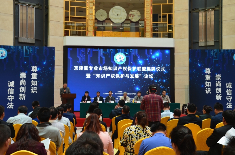 近日,京津冀專業市場知識產權保護聯盟成立揭牌儀式暨“知識產權保護與發展”論壇在石家莊舉行,河北省第二批“國家級知識產權保護規范化市場”授牌儀式暨京津冀專業市場知識產權保護聯盟次會議同期召開。國家知識產權局保護協調司副司長武曉明、河北省知識產權局局長高振峰、北京市知識產權局副巡視員周立權、天津市知識產權局副巡視員藍兆琪出席會議并致辭。