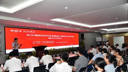 2018年6月26日,“長沙高新區(qū)科技金融助力企業(yè)發(fā)展”銀企對接會在麓谷基金廣場舉行,長沙銀行副行長王鑄銘,高新區(qū)調(diào)研員、主任助理劉清文參加對接會并致辭,活動吸引有融資意向企業(yè)負責(zé)人共100多人參加。