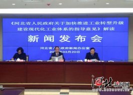 3月20日,河北省政府新聞辦召開新聞發布會,對《河北省人民政府關于加快推進工業轉型升級建設現代化工業體系的指導意見》進行解讀。圖為發布會現場。記者杜昱輝攝 河北新聞網3月20日訊