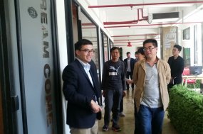 2016年6月6日,石家莊創客樂園一行人來到邯鄲高科DCT創客空間參觀學習。邯鄲高科園區發展股份有限公司董事長王江濤等相關人員陪同參觀。 一行人首先來到DCT創客空間一層參觀,王江濤向創