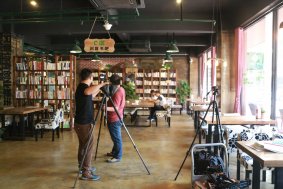 2016年6月13日,河北省科技管理信息中心人員對邯鄲高科DCT創客空間進行了專訪。 采訪人員首先在DCT創客空間一層創客書吧、項目路演大廳和人才交流展示區進行了拍攝,還采訪了DCT創客空間工